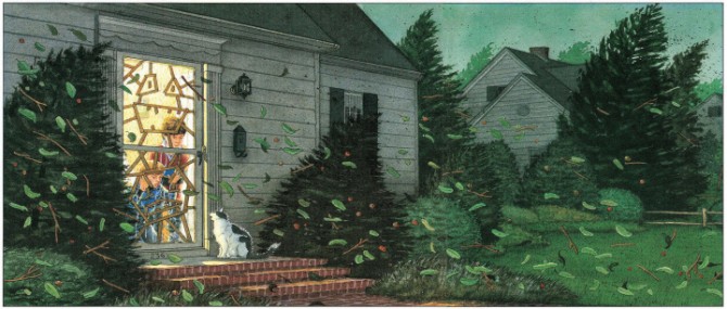 이야기는 다음과 같다: 폭풍전야의 두형제의 두근거리는 마음과 걱정은 고양이 한니발을 찾은 후, 가족과 더불어 시간을 보내며, 폭풍에 대한 궁금함과 호기심으로 가득차게 된다. 폭풍후 마당에 쓰러진 커다란 느릎나무와 더불어 놀이를 즐기며 그들만의 상상력으로 즐거운 시간을 보내게 된다. 그러나, 어느날 나무는 청소되어 없어지게 되어, 형제는 안타까워 한다. 하지만, 멀리서 또 다른 폭풍이 몰려옴을 보며, 다시 느릎나무 놀이터를 기대하게 된다.