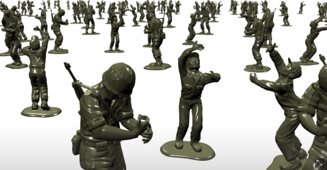 한국 전쟁 시기 남한의 국군 장교로 참전했던 형 박규철과 조선 인민군 병사로 참전했던 동생 박용철이 한 전투에서 재회하게 되는 슬픈 역사의 한 장면을 영상으로 재현한 전준호 작가의 <하이퍼 리얼리즘(형제의 상)>은 형제가 감격의 재회를 누리지 못하고 홀로 허공을 안은 채 왈츠를 추는 모습으로 나타난다. 가까워졌다 멀어지며 닿을 듯 닿지 못하고 끊임없이 맴도는 안타까운 모습에서, 분단국으로서 우리가 마주한 현실을 누구나 쉽게 이해할 수 있도록 영상에 담았다.