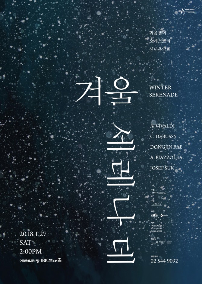‘겨울‘, ‘세레나데‘라는 말에서 느껴지는 색감 ’어스름함‘과 정서 ’서정성‘을 제한된 음 재료를 가지고 ‘거대한 현악기’-20대의 현악기로 구성된-의 질감으로 표현해 보았다. 시간의 흐름에 따라 변하는 음영의 미묘한 차이에서 깊은 ‘밤’의 소리가 전달되길 바란다.